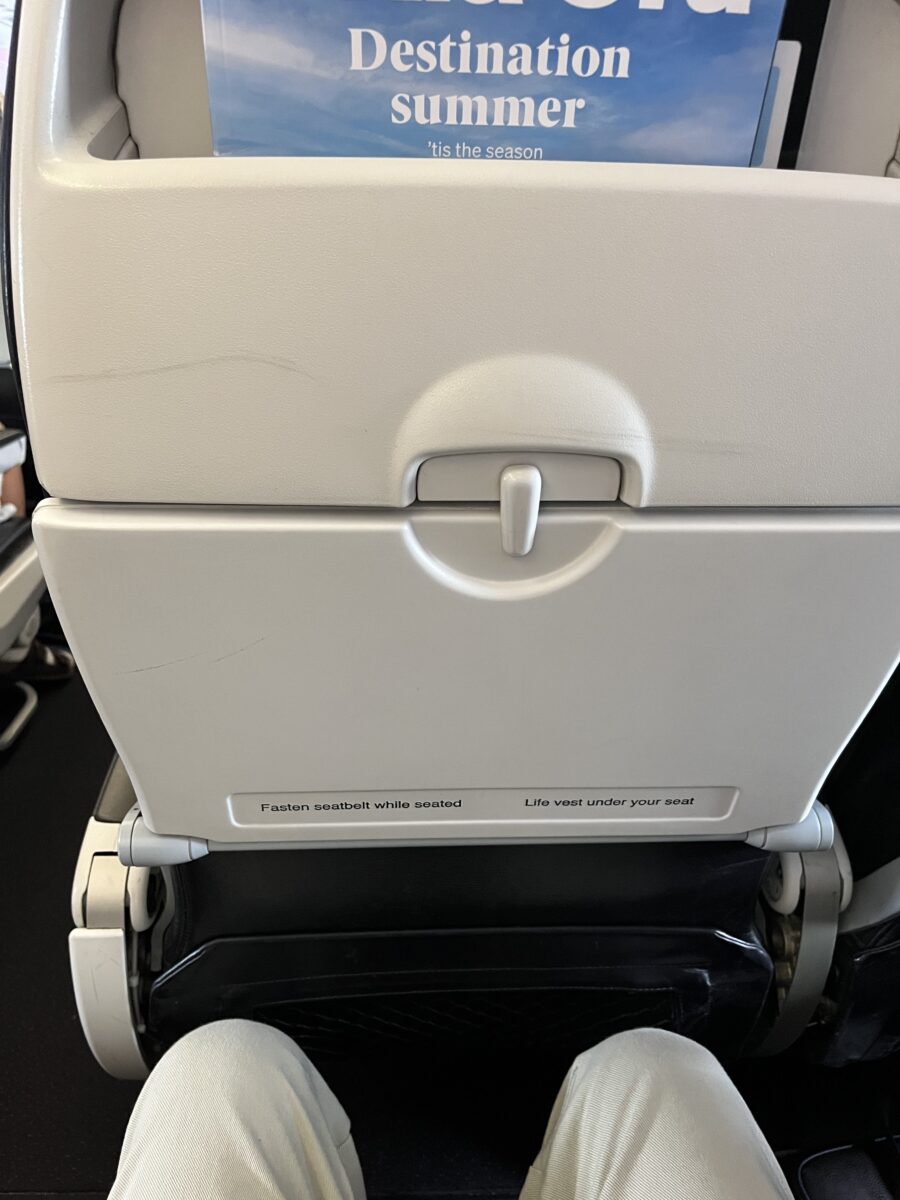 The cabin was clean and well kept. The slimline seats don’t offer much in the way of comfort or support. Their slim design does however provide ample legroom for short flights.
