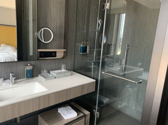 Now I know there are showers in the airport lounge, but it had been noted that there were only 2 showers and that they were always busy, so being able to change, put our smelly clothes into a checked bag (instead of our carry-on) was wonderful. The hotel redeemed itself.