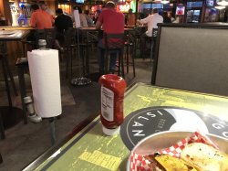 The menu is a giant plastic-coated book of ‘American favourites’ liberally laced with adjectives of how big and health-destroying each meal is.