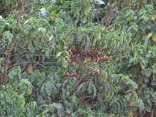 Many tea factories but behind this village a lot of coffee bushes including flowering bushes-