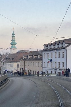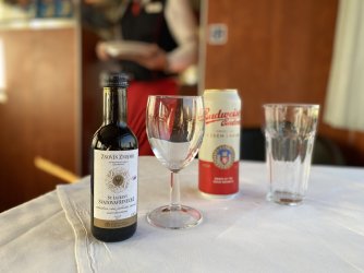 Next stop was a soviet era market Tržnica which still operates today for an older clientele aged 65+ nostalgic for the "good old days". It's heritage listed. Note the Vietnamese food place - there was a lot of migration from North Vietnam to the CSSR during the Communist period. Also note the quality drinking wine on sale for €1,50!