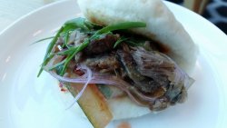 Bun was a soggy lump of glutonous stomach filler ... I basically ate just the filling which was like a rather spicy Chilli lamb casserole thing.