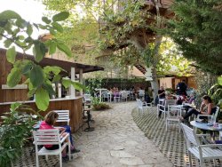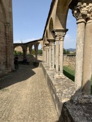 Calm until a bus load of tourists disgorged and ruined the serenity. These interlopers aside, the other win from this location is the view west of our destination and, more importantly, the view *downhill* west. The first 1-1.5kms of this is steep and in shale. This is the mentally challenging facet of hiking especially at the end of the day. The last 2kms though is a flattish track on a good surface until the last 300m with a climb into Uterga. Most of these villages were built centuries ago on high ground for fortification. Good for people back then, not so good for hikers just wanting to get dinner and a bed. Once in Uterga though I was more than happy with accommodations for tonight. Great place with an outside verandah and bar.