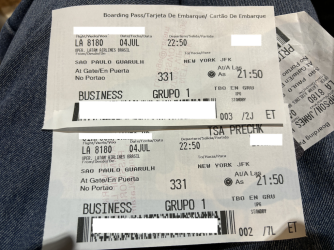 The point I guess I should make is this whole thing is a gamble, it is not 100% certain, that's how upgrades are. If you are comfortable with the (low in my experience) prospect of being seated in coach, and are willing to do the homework to stack the odds in your favour (i.e. using ExpertFlyer to determine which dates have more J availability), it can be worth your while. One note on ExpertFlyer for LATAM: the highest inventory level for each fare code is 7. So if you see J7 that means there are 7 or more seats available. The LATAM business class fare codes are J, C, D, I, and Z. If you see something like J7, C7, D7, Z7, I7, that generally means the business class cabin is relatively empty. The other point I'll mention is that the value really kicks in when you are travelling with others since you can apply upgrade requests for yourself and anyone travelling with you (or on that flight for that matter). So for me the value here was huge since it wasn't just 2 long haul flights. It was 2 long hauls for 2 passengers.