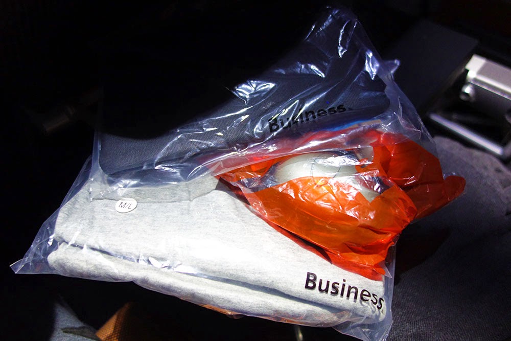 The lunch service was performed in a flash as the flight attendants did a second round for drinks. I decided to go for a sparkling wine which was served ice cold and full of bubbles. Meal done and sparkling gone, I left the tray on the side storage bin and headed for the lavatory to change into a pair of sweat pants.