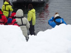 What we did do though was sail close to A57A a 22 km long, 10 km wide and 30 m above water tabular iceberg. It was certainly impressive! With 300 m below the water level and a sea depth of only 290 m this iceberg is well and truly grounded for the present so it’s not going anywhere soon.