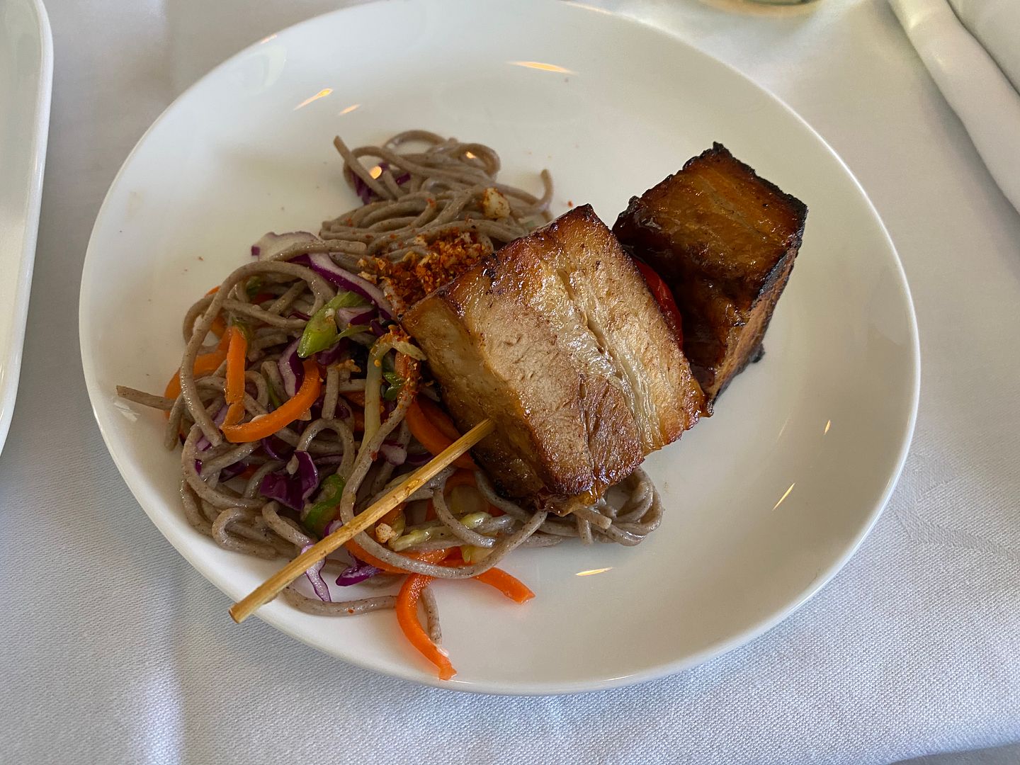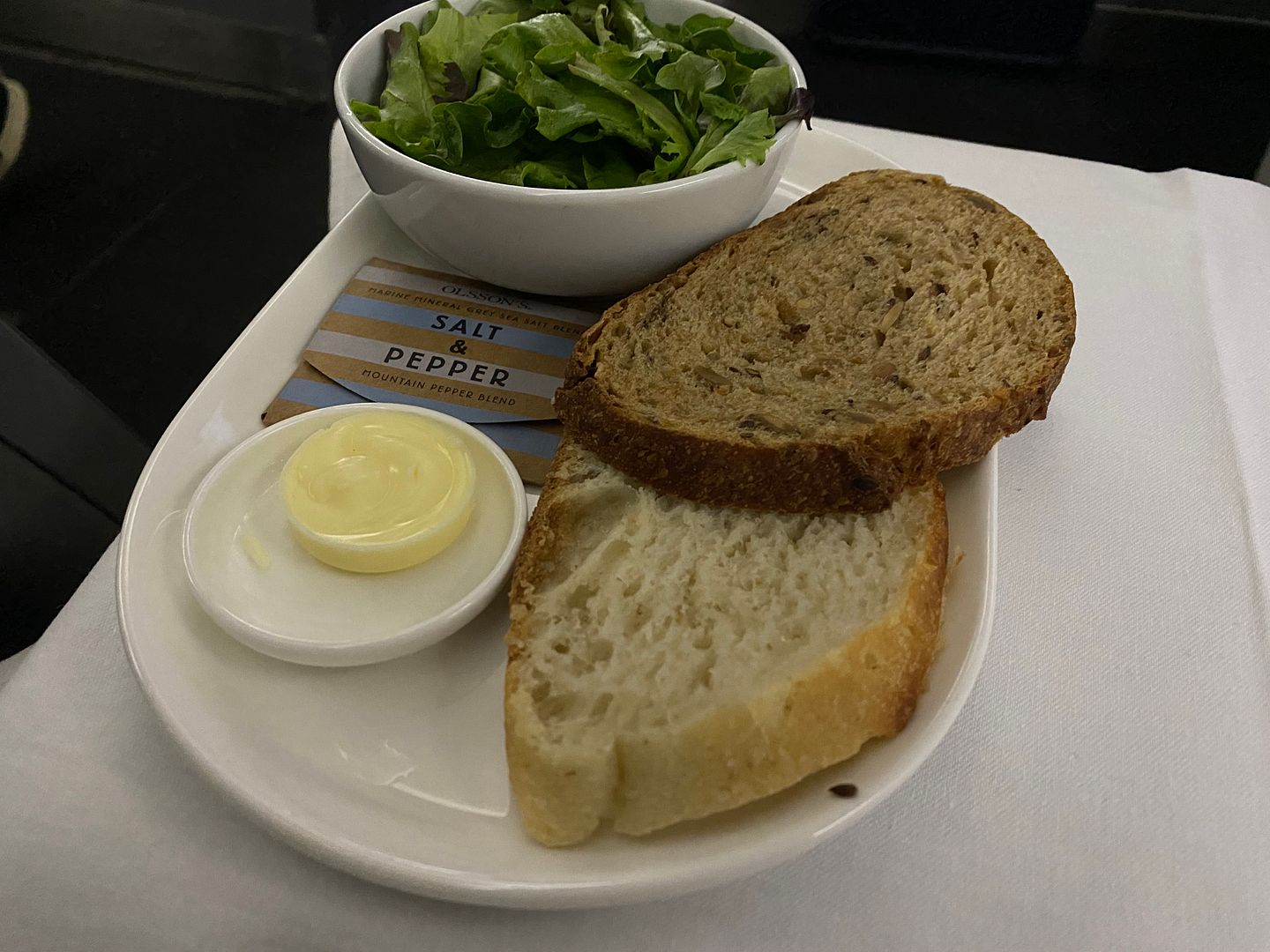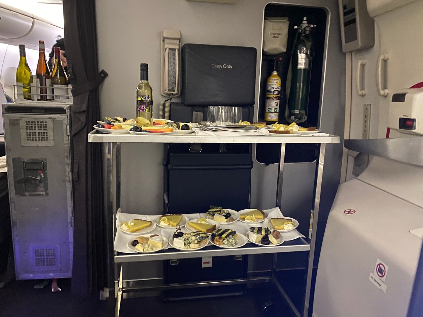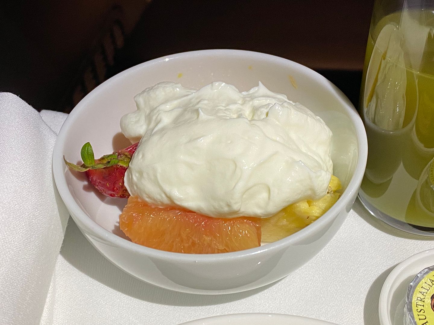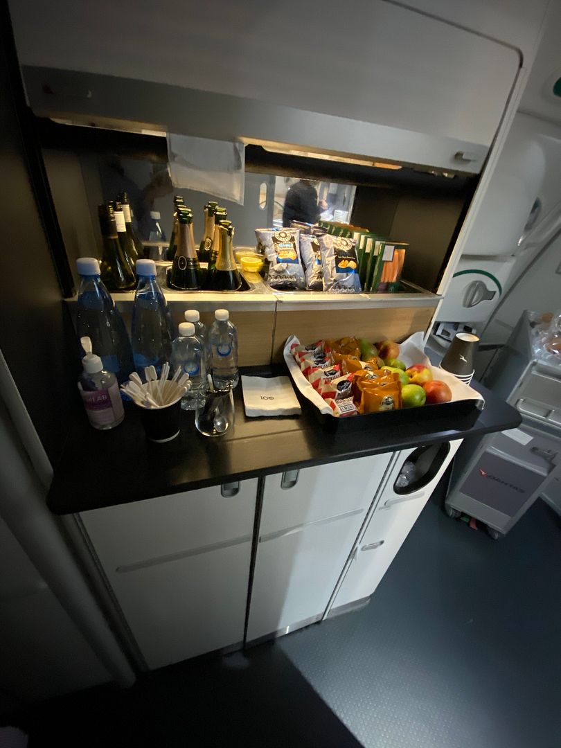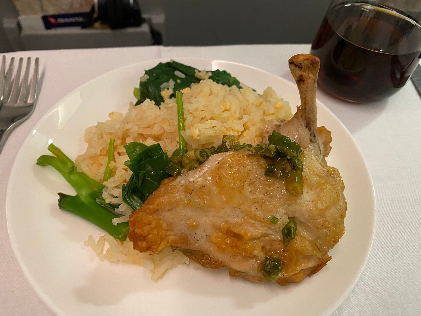 Mid flight I had the Japanese meatballs, twice. The lime mayo I thought was bland, but the meatballs, accompanying cabbage greenery and sauce were lovely.