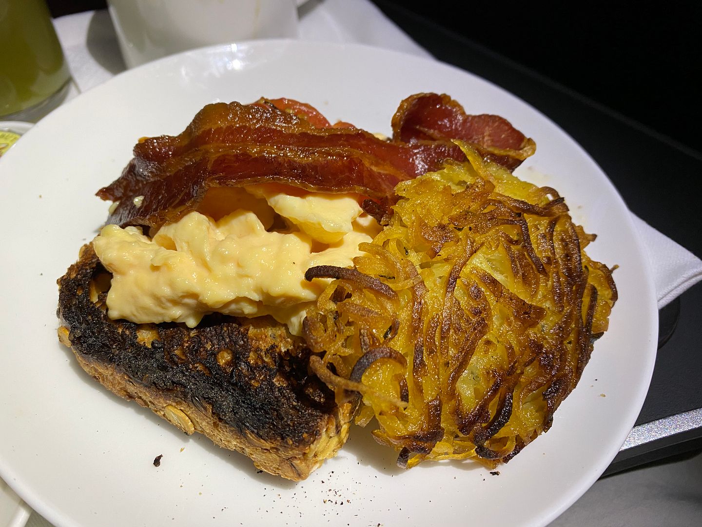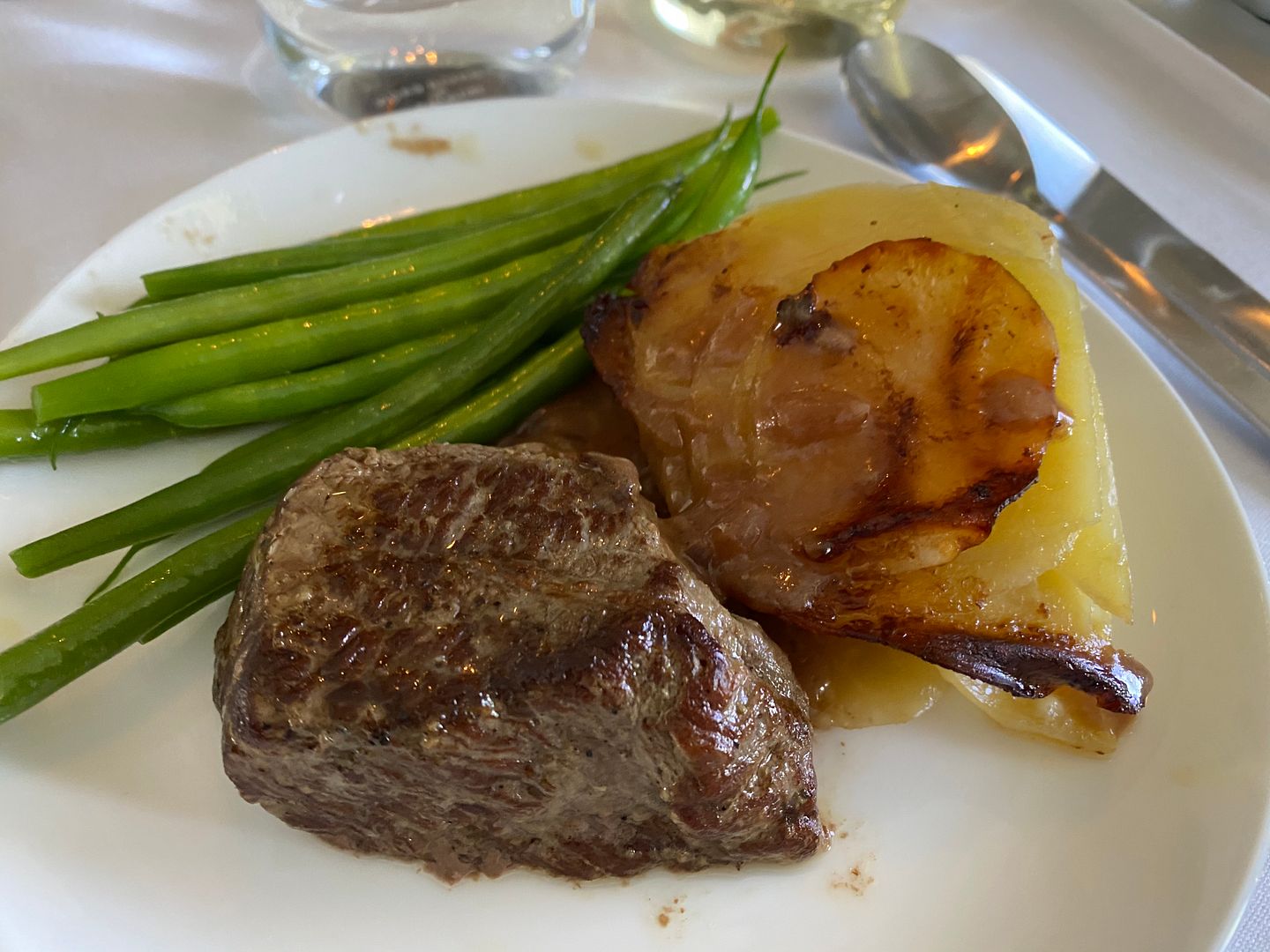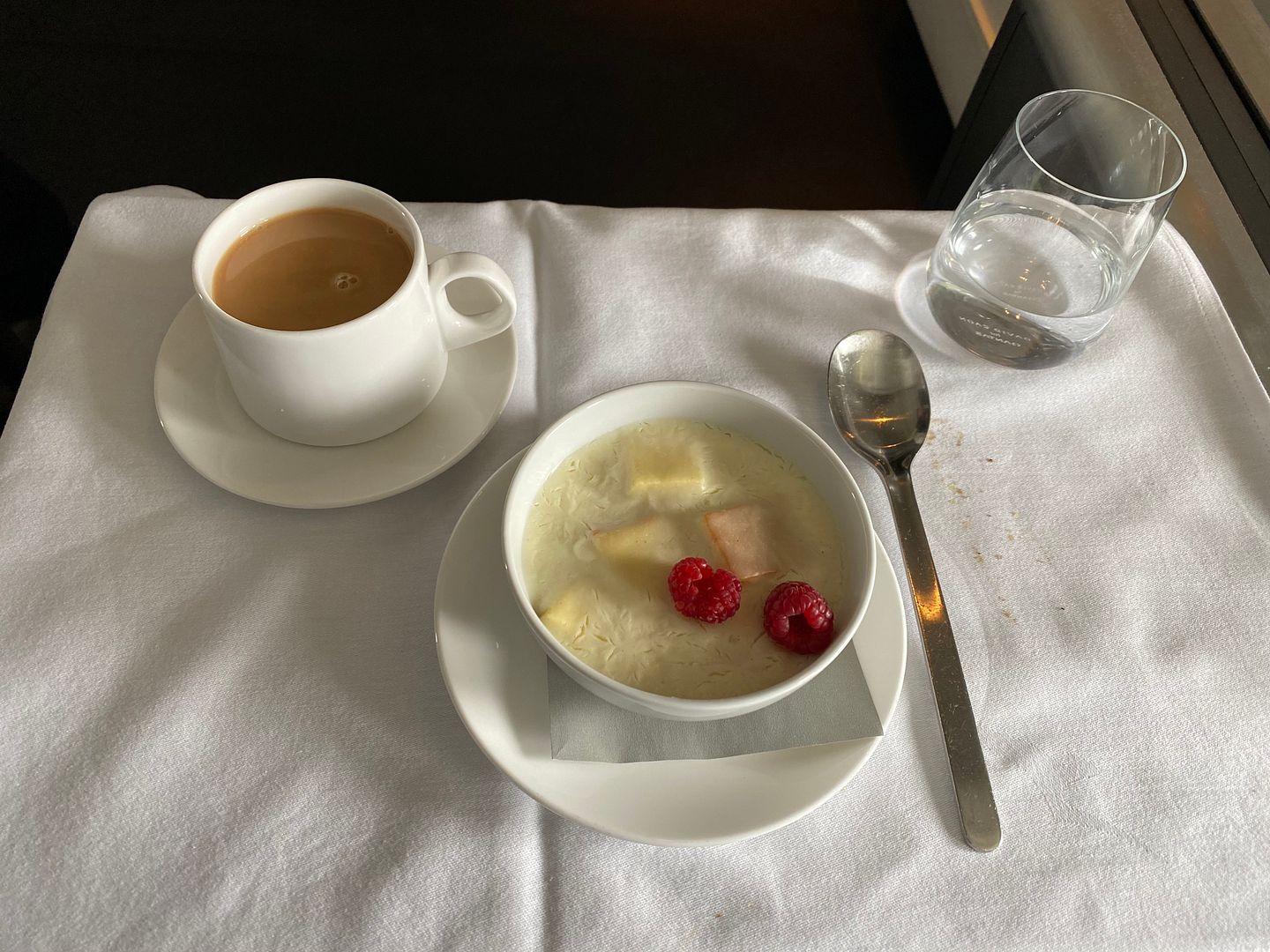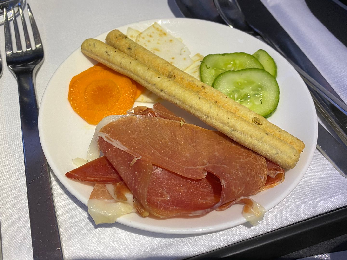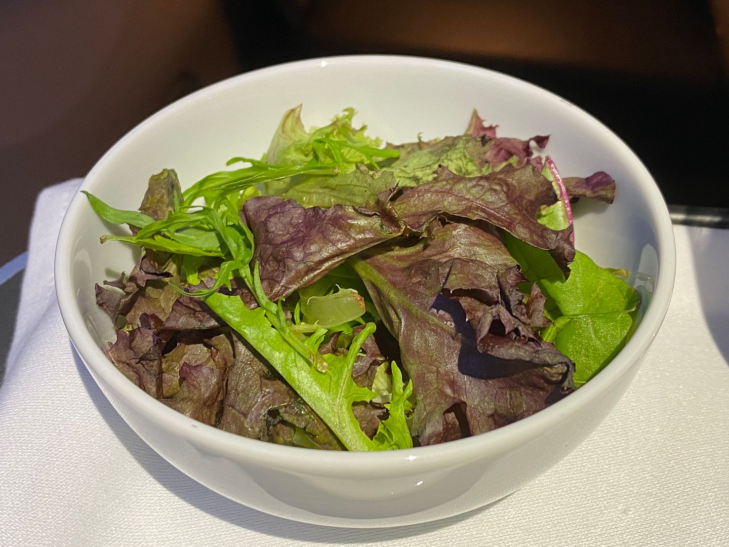 Mid flight I had the Japanese meatballs, twice. The lime mayo I thought was bland, but the meatballs, accompanying cabbage greenery and sauce were lovely.