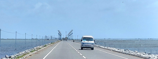More good roads despite Lucky taking secondary roads to give us a better look around. As always, slow but well behaved traffic and plenty of police out and about. We stopped to give a lift to a nice hitch hiking policewoman trying to get to work in the next village-she had been waiting for a bus for more than an hour and other cars had been ignoring her ( I think Lucky thought it was a good omen to give her a lift) . Plenty of military bases ( a constant throughout) and we enjoyed a break at a army welfare canteen. The Sri Lankans often erect quite elaborate walls at major traffic intersections. Also saw our first fish farm on this day. The entry into Mannar is spectacular as you join the island along a very low, long causeway plenty of salt flats and boats.