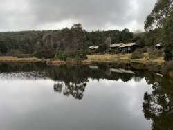 We reached the hotel. Its just outside the National Park - its not the 'Cradle Mountain Lodge - that's the place to be, if you can afford it. Cabins, each with log fires etc ... There is also an extensive 'Wilderness Village of lower-end huts etc. All put in in the past 20 years.