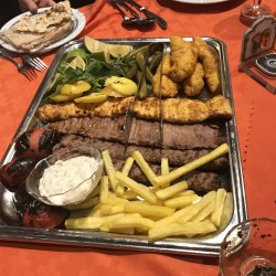 Main course, mixed kebabs, with rice. Much better than its plain appearance: