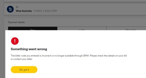 I dont have banking on my phone, so PAY ID not available, the bsb supplied by wise 774 011 is not recognized by Commbank or Newcastle perm.