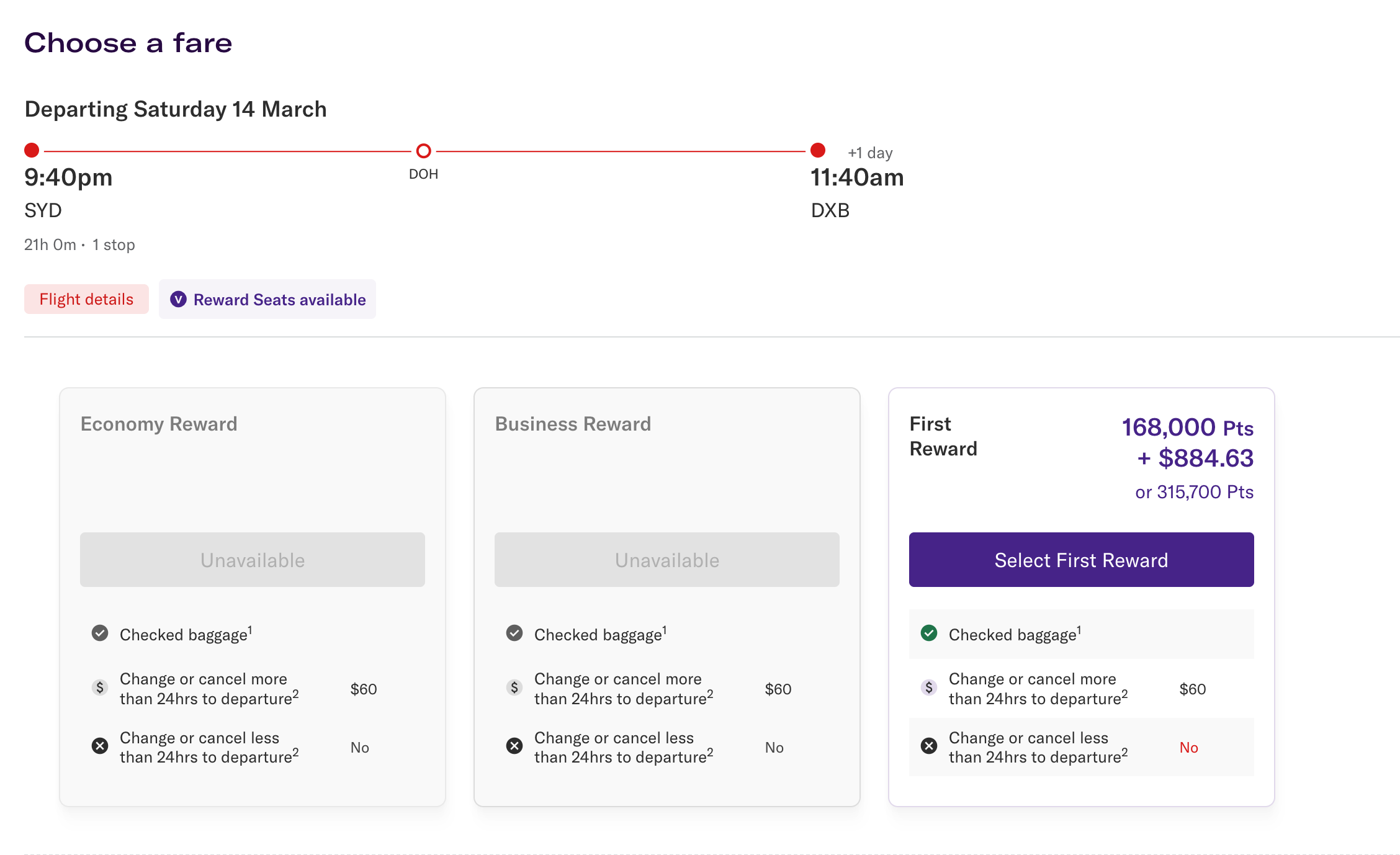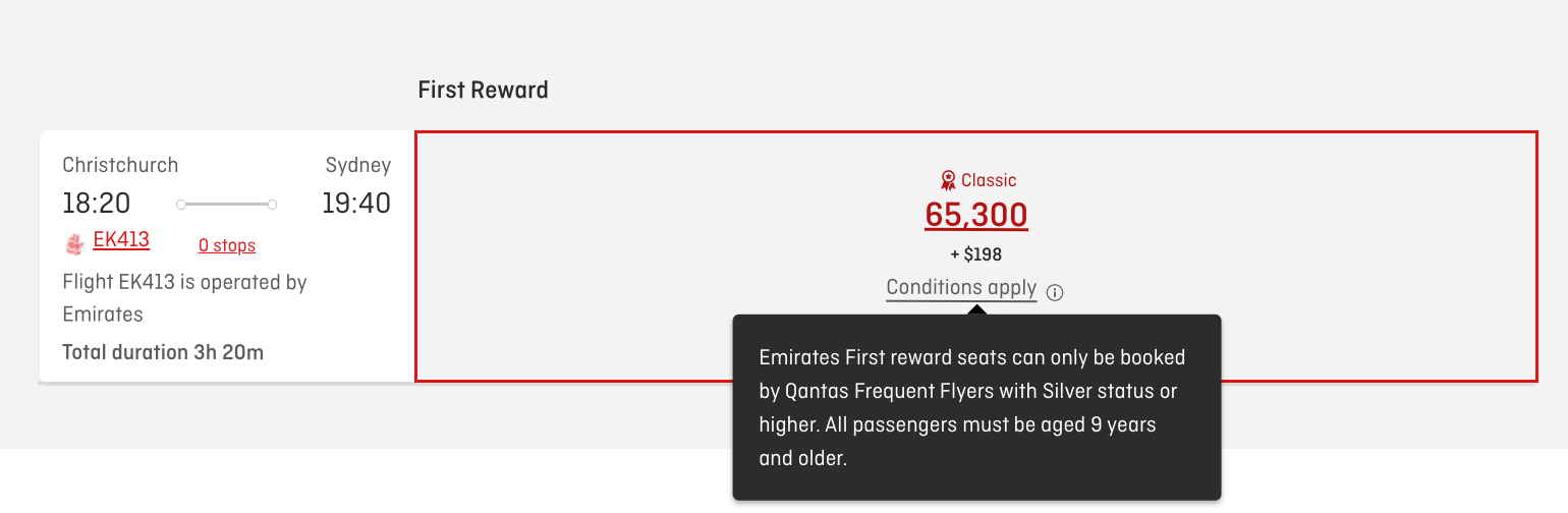 Qantas First Class reward availability is typically difficult to find. But you may be able to find a seat with Qantas points when Qantas releases extra Classic Flight Reward seats. If you’re a Qantas Platinum or Platinum One member, you may also be able to request the release of a First Class reward seat.