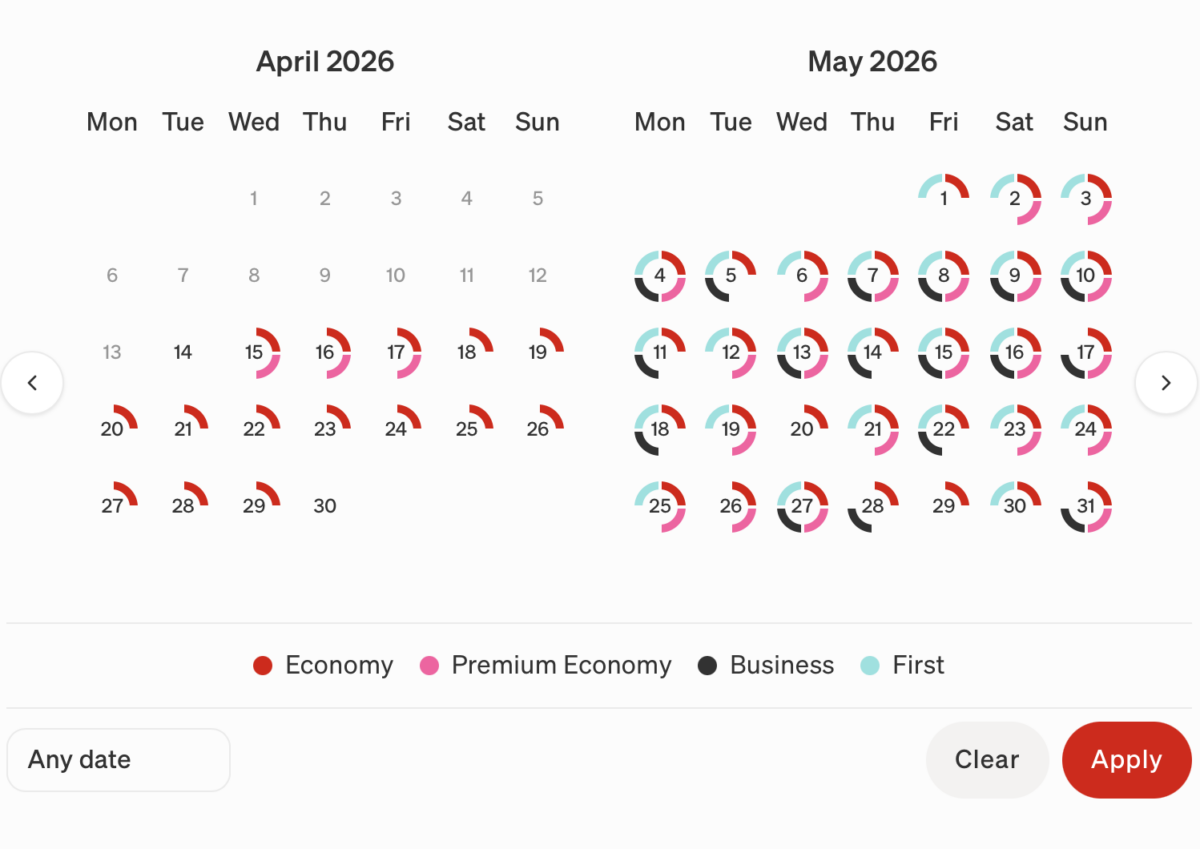 For flights between Australia and Dubai, Perth and Melbourne appear to have better availability than other capitals. The Flight Reward Finder also shows Emirates availability onwards from Dubai and across its global network.