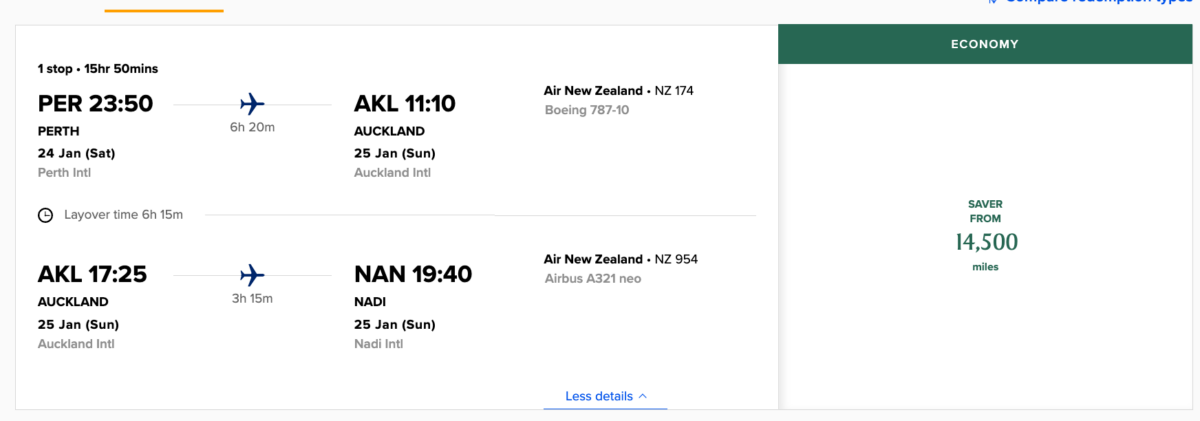 If you can find award availability, you could even book an Air New Zealand Economy Class itinerary from Perth to Tahiti via Auckland (for example) for just 14,500 KrisFlyer miles + taxes.