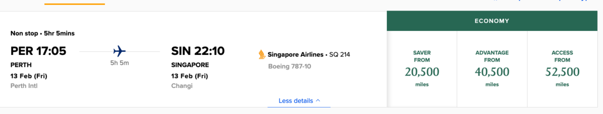 In some good news, the award chart changes in 2025 had a positive impact on many Economy Saver redemptions. 20,000 KrisFlyer miles might be almost enough to book a one-way Singapore Airlines flight from Perth or Darwin to Singapore. It now costs 20,500 miles (down from 21,500 miles) plus taxes to book this route as a Saver Award in Economy Class.