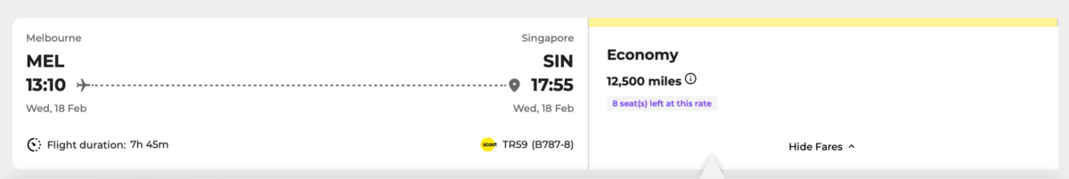 Scoot is the low-cost arm of Singapore Airlines, and operates flights from Singapore to Melbourne, Sydney and Perth. In August 2025, Singapore Airlines’ KrisFlyer program unveiled a new fixed-price award chart for Scoot redemptions. There is a separate award chart that sets the number of KrisFlyer miles required for Scoot redemptions, with prices starting from as low as 1,500 KrisFlyer miles + taxes.